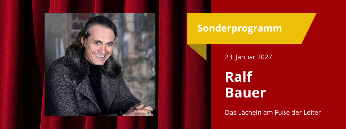 Ralf Bauer, einem breiten Publikum aus Theater, Film und Fernsehen seit vielen Jahren vertraut, präsentiert ab Frühjahr 2027 sein neues Bühnenprojekt „Das Lächeln am Fuße der Leiter“. Bauer ist für seine vielseitige Schauspielkunst bekannt und hat sich in den letzten Jahren zunehmend auch literarischen Stoffen und interdisziplinären Bühnenformaten gewidmet. Seine künstlerische Arbeit umfasst Theater, Film, Lesungen, erzählerische Projekte sowie körperorientierte Spielformen – ein Hintergrund, der seine Beschäftigung mit poetischen Texten besonders prägt.